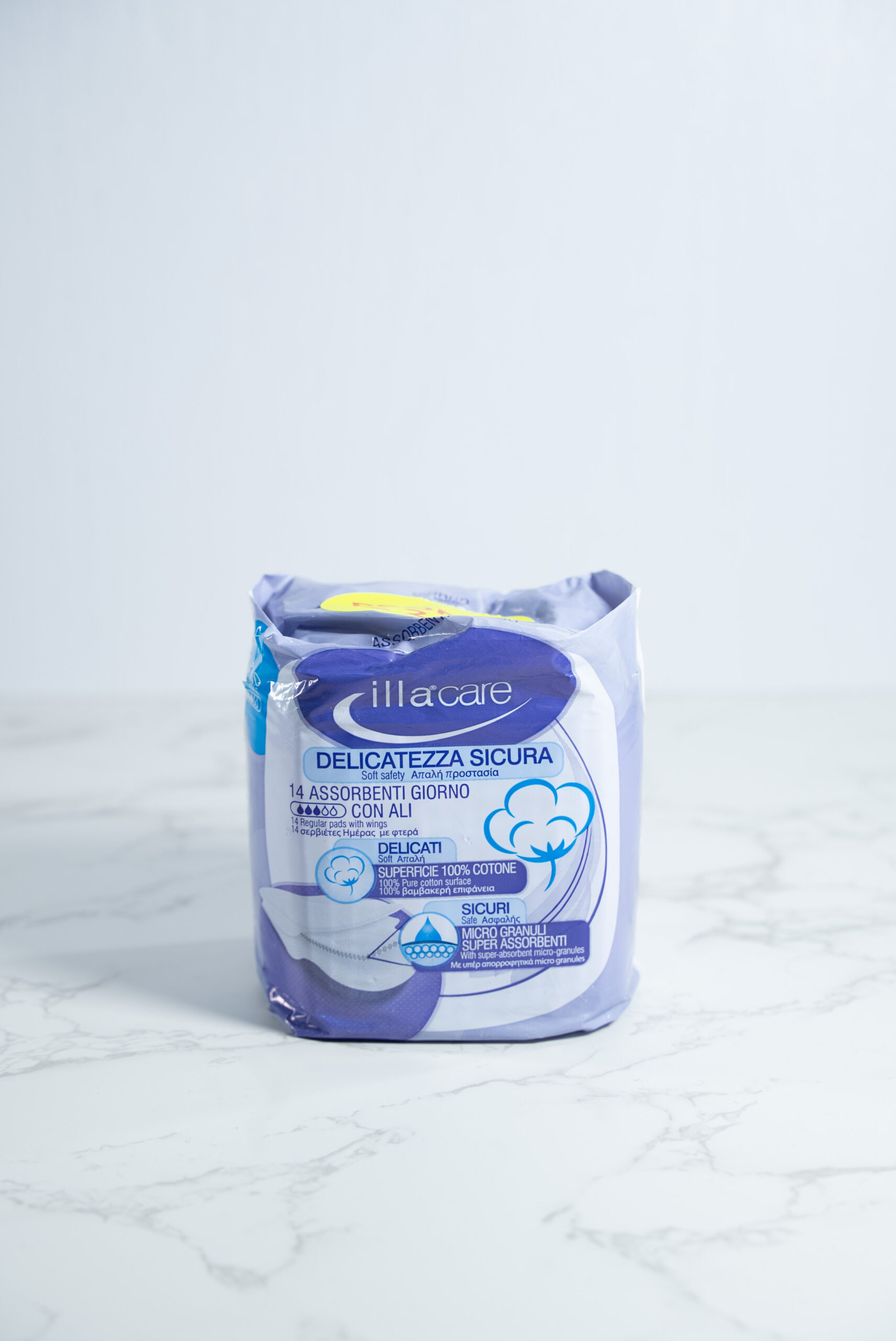 Assorbente con ali che aiuta a prevenire arrossamenti e irritazioni grazie alla SUPERFICIE in COTONE 100%.