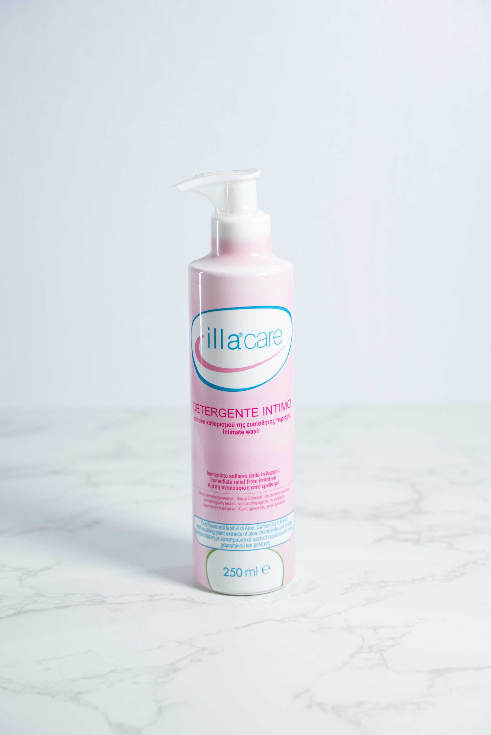 Illa Care Detergente Intimo Detergente intimo quotidiano, formula a base di fitoestratti lenitivi di aloe, camomilla e malva. Grazie agli estratti vegetali, aiuta ad alleviare rapidamente il prurito, il bruciore ed il fastidio dovuto alle piccole irritazioni: l’aloe, emolliente naturale, regala freschezza; la camomilla, lenitiva, dona sollievo; la malva, aiuta a prevenire le irritazioni. Il pH lievemente acido rispetta le difese naturali della mucosa. Contiene principi attivi antiodoranti che contrastano e prevengono i cattivi odori, anche durante i giorni del ciclo mestruale. Adatto per tutta la famiglia, si risciacqua facilmente e permette l’utilizzo quotidiano anche ripetuto più volte, senza causare irritazioni o secchezza. Componenti Fitoestratti di: aloe, camomilla e malva. Formato Flacone da 250 ml.